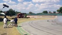 Cristiano Ronaldo shooting balls on the track with Jenson Button