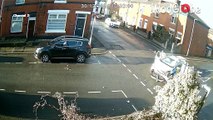 Police car collides with fast-moving van at junction, causing it to flip into a parked vehicle