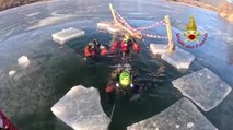 L'immersione dei vigili del fuoco nel lago di Fedaia a 4 gradi