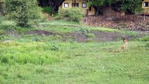 Lion saves calf Lion protects prey and saves from another lion attack