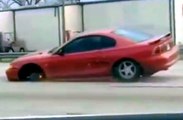 Mustang Driving Down Highway With a Missing Wheel