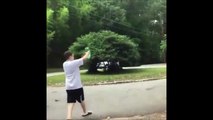 Des ados essaient de casser une bouteille sur un casque... Raté!