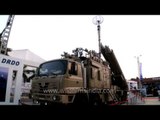 Arjun Mk II at DefExpo 2014 in the user configuration, with mine ploughs, remote controlled weapon system and additional protection tiles on the turret.