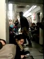 Musicien du métro complètement fou! Il se tape la tête contre le train!