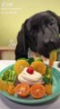 Very elegant dog enjoying his dinner