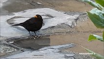 Merlo che beve dalla pozzanghera
