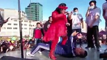 Así bailó María Galindo su cumbia en la plaza San Francisco