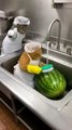 He just wanted to wash the watermelon in peace... 😼🚿