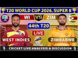 🟥 Zimbabwe vs West Indies, 44th T20 Live Score & Commentary - WI vs ZIM 44th Match T20 World Cup 2026