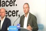 Valencia, 24 may (EFE).- (Imágenes: Eusebio Calatayud)<br /><br />El president de la Generalitat Valenciana, Alberto Fabra, ha reconocido hoy que los resultados electorales del PP han sido "malos" en su Comunidad y en la mayoría de municipios, y ha dicho que trabajará para recuperar la confianza y generar "estabilidad y seguridad".<br />Fabra ha comparecido ante los periodistas cerca de la medianoche en la sede del PP, acompañado de la portavoz de su gobierno, María José Català, y de varios consellers, entre ellos la también coordinadora general del partido, Isabel Bonig.<br />En una comparecencia sin preguntas, Fabra se ha referido a los resultados de las elecciones y ha reconocido que habrá un cambio de gobierno, del que saldrá el PP después de 20 años.<br />El PP ha sido el partido más votado, ha añadido, pero ha precisado que se escribe "una nueva etapa" en esta autonomía, en la que el PP "estará siempre defendiendo los intereses de la Comunidad por encima de todo". EFE.<br />ca-jmm/ess<br /><br />IMÁGENES DE FABRA EN LA SEDE DEL PP VALENCIANO.<br /><br />EFE-TV VALENCIA DURACIÓN (00:45 m) TELÉFONO DE CONTACTO: 913467200<br />CORREO ELECTRÓNICO tvefe@efe.es WEB: www.efeservicios.com. Palabras clave: efe,elecciones,24m,resultados