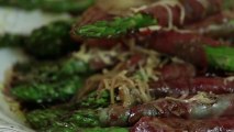 RECIPE- Bruschetta with Asparagus & Prosciutto <br /> <br />Serves 3 <br /> <br />Ingredients: <br /> <br />6 Asparagus [cut into 2 inch (5 cm) pieces] <br />1 Medium Shallot [thinly sliced] <br />1 Clove of Garlic [minced] <br />1 Tbsp (15 g) Extra Virgin Olive Oil <br />2 Tbsp (30 g) Balsamic Vinegar <br />6 Large Basil Leaves <br />2oz (60 g) Thinly Sliced Prosciutto <br />2oz (60 g) Smoked Mozzarella [thinly sliced] <br />1 French Baguette <br />Salt and pepper (to taste) <br /> <br />Process: <br /> <br />1) Preheat your broiler to low and also preheat a grill pan to toast the bread. <br /> <br />2) In a small nonstick skillet on medium heat, sauté the shallots and garlic with the extra virgin olive oil, until the shallots and garlic become light golden brown, for about 2 minutes. <br /> <br />3) Add the asparagus, season with salt and pepper to taste, and cook for 1 minute. Add the balsamic vinegar, lower the heat to medium low and cook for 5 minutes. The asparagus should be crisp tender. <br /> <br />4) Meanwhile slice the baguette into 6 slices on a diagonal and drizzle lightly with the extra virgin olive oil. Place the slices of bread on the preheated grill pan and toast them until golden brown on both sides. About 2 minutes per side. <br /> <br />5) Once the asparagus is cooked and the bread is toasted, line the bread on a foil lined baking sheet and top with a couple pieces of asparagus with a little bit of the shallot and garlic mixture. Place 1 small thin piece of prosciutto over the asparagus, top it with a big basil leaf, and a slice of the smoked mozzarella. Place them under the broiler to melt the cheese, making sure you don’t step away because the cheese takes a matter of seconds to melt and it can burn very quickly. <br /> <br />6) When ready place them on a pretty platter and serve immediately! <br /> <br /> <br />Enjoy Eating!!!!!