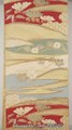 Vintage Formal Fukuro Obi with Flowers & Clouds on Mountains - Subdued Colors - Gold, Red, Blue, White - Shippou, Umezakura, Kaede, Hishi