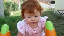 Camille fait du toboggan sur maman