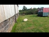 Bizarre sheep with an upside down head