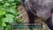 Gato é apanhado por teia de aranha