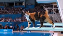 cat jump swimming pool