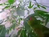 Parrot rolls and smokes a joint