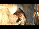 Baby Buffalo Drinking Milk - calf