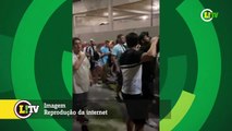 Torcida canta o hino do Brasil na chegada da Seleção em Fortaleza