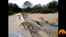 14 Lions Stroll Down Road Blocking Traffic | Happily TV
