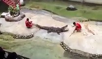Alligator Tries to Bite Trainer’s Head in Zoo