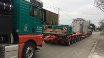 Le convoi exceptionnel SPX pour l'usine de lait de Carhaix a quitté ce matin Glomel pour rejoindre en début d'après-midi Plévin puis Carhaix. Fin de matinée, le convoi s'arrête au carrefour de la D3 et de la D 83 pour une pose casse-croûte.