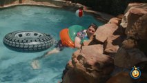 GIANT Inflatable Shark, Water Balloons Fight & Pool Tricks w_ Water Toys Family Fun Video for Kids-Ic