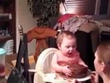 Baby Enjoying His First Birthday Cake