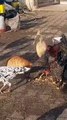 Cat Eats on Chickens back