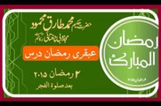 ۳ رمضان ۲۰۱۵ بعد صلوۃ التروایح عبقری درس۔ حکیم محمدطارق محمودمجذوبی چغتائی دامت برکاتہم العالیہ <br />پورا رمضان دراصل زندگی گزرانے کی ایک مشق ہے۔ پورارمضان میں اللہ جل شانہ نے عبادت کورواج میں دے دیا، سجدوں کو عام کردیا۔ تسبیح اورتلاوت ، مناجات اوراپنی ذات عالی سے مانگنا بہت ہی زیادہ سستا کرکے بندوں کے دلوں میں ڈال دیا۔ استقامت کون دیتا ہے۔ جب چاہے بندوں کیلئے خیرکے دروازے کھول دے، جب چاہے بندوں کیلئے عافیت کے دروازے کھول دے