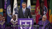 Le président Barack Obama a rendu vendredi à Charleston un vibrant hommage au pasteur noir, Clementa Pinckney, abattu, avec huit paroissiens, par Dylann Roof, partisan de la suprématie blanche. "Aveuglé par la haine, le tueur présumé ne pouvait pas voir la grâce qui entourait le révérend Pickney", a déclaré le président américain. <br />Barack Obama a terminé son eulogie en entonnant seul, puis avec l'assistance, le chant "Amazing grace", un hymne chrétien très populaire aux États-Unis.