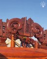 Wood carving - Lord Warrior fighting Dragon - Multiplatform MMORPG Gran Saga Huge Sculpture Amazing