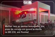 Mulher tem as pernas esmagadas por pneu de carreta em grave acidente na BR-230, em Pombal