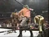 Y2j tente une prise aérienne à travers les cordes ( je sais pu comment elle s'appelle ^^) et les cordes casse, et y2j se dalle donc le match est pas interrompu mais le scenario chance ;)