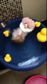 Cat Takes a Soothing Bath With Rubber Duckies
