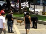 Biker kicks street dancing man fail (video)