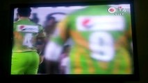 Wicket-keeper holds batsman's legs while trying to catch ball during Pakistan Super League