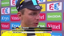 Le maillot jaune du Tour de France, l'Allemand Tony Martin, est contraint d'abandonner après sa chute dans le final de la 6e étape au Havre. Victime d'une fracture ouverte de la clavicule, Tony Martin souhaite désormais bonne chance à ses coéquipiers de l'équipe Etixx Quick Step.