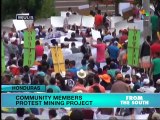 People throughout the country affected by mining practices protested an international mining forum being held on Thursday in Tegucigalpa for the stated purpose of bringing more investment to the country. But protesters say that in Honduras the rules are written to favor private companies and charge that mining will do untold damage to the environment and people’s health. They also say they have not been consulted about mining plans and that they will continue to protest. Gerardo Torres reports from Tegucigalpa from teleSUR.