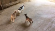 Cat is not impressed by two baby goats