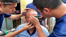 Chinese man lucky to avoid serious injury after fishing hook pierces his forehead