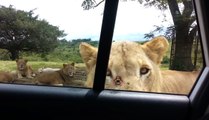 Lion Opens Car Door To Get A Closer Look!
