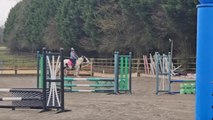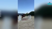 Rider falls off after horse veers off path at show jumping clinic