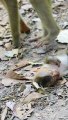 Extremely baby scared monkey, Money run full speed to mother Moly, Money is afraid of mom Abandoning