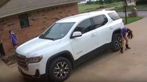 Energetic girl puts on a HEADBANGING spectacle while making rockstar exit from car