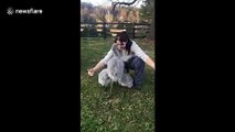 Trio of baby flamingos run to hug their human 'mama' at Virginia zoo