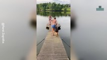 Hilarious Moment Man and Dog Fall Into the Lake