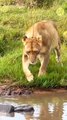 Lion Drinking Water in the Wild – Peaceful Safari Moment