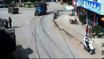 Spectacular truck crash as wheel axle collapses in China