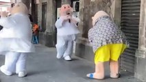 Dr. Simi pushes Mr. Beach Simi during the dance and sends him tumbling